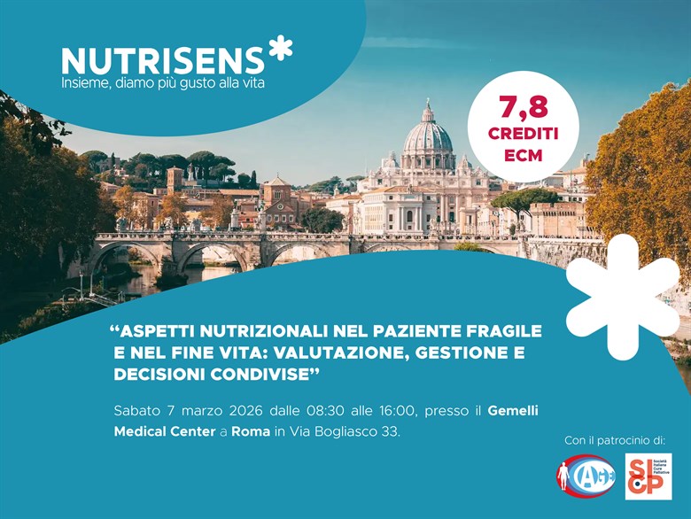 Evento ECM a Roma: Aspetti nutrizionali nel paziente fragile e nel fine vita: valutazione, gestione e decisioni condivise
